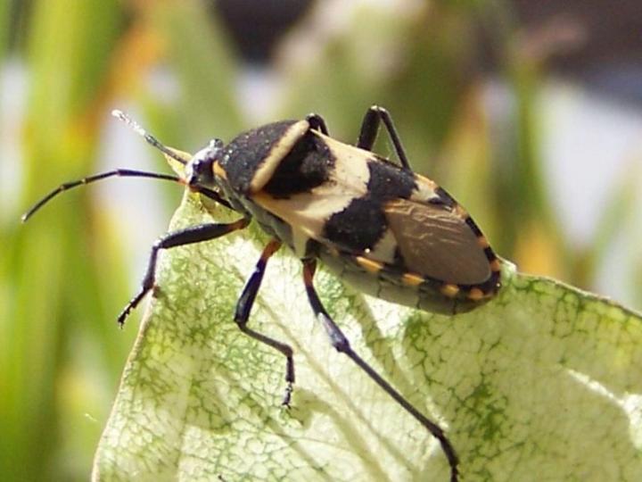 Buena un pelin de foco y hubiese quedado fantastica. En cuanto a la especie coincido con Nayme es de la familia de las vinchucas, esta especie tiene esa especie de pintitas amarillas y negras en el final de las alas.Saludos Mavi
