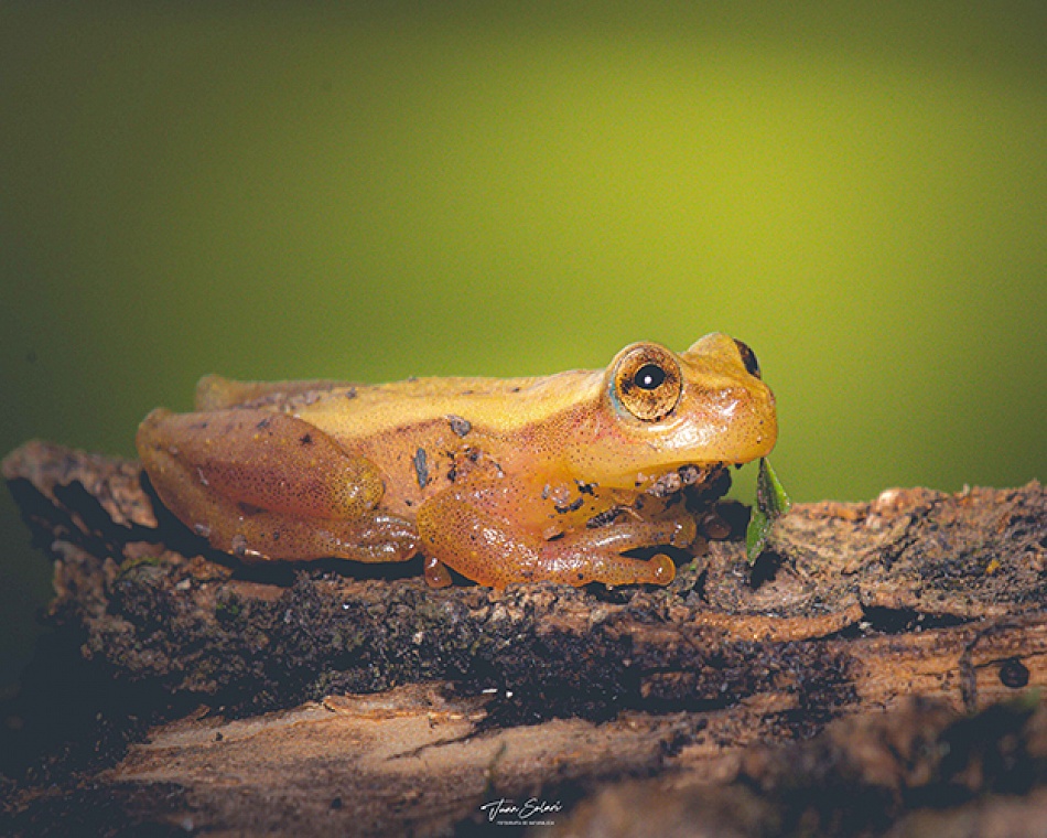 La Ranita Grillo (Dendropsophus sanborni) es un anfibio muy pequeño, de menos de 2,5 cm de longitud. Su coloración es típicamente marrón o amarillenta, destacando por las manchas anaranjadas brillantes que oculta en sus muslos. Es una rana Trepadora que utiliza los discos adhesivos de sus dedos para vivir en la vegetación cercana a cuerpos de agua (lagunas, bañados y ríos) en Argentina, Uruguay, Paraguay y Brasil. Los machos emiten un canto característico que suena como un repetido "ti-ti-ti", similar al de un grillo, lo que le da su nombre popular. Es una especie importante para el ecosistema, ya que se alimenta de pequeños insectos.