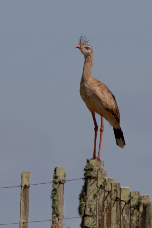 En Uruguay se la llama Seriema, anda en parejas y es bastante difícil encontrarla en tan vastos campos.