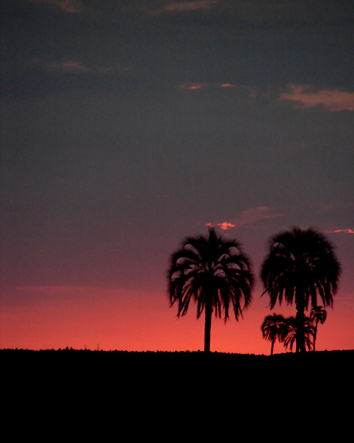 Increíbles las tonalidades del cielo y esas palmeras a contraluz,excelente atardecer,buen punto de vista,saludos