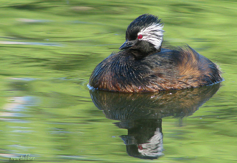 ¡¡hermosa toma del macá!!!! Agradezco que la hayas subido; la nitidez,el reflejo ,ese fondo de "pinceladas".Todo el conjunto una belleza!!!
