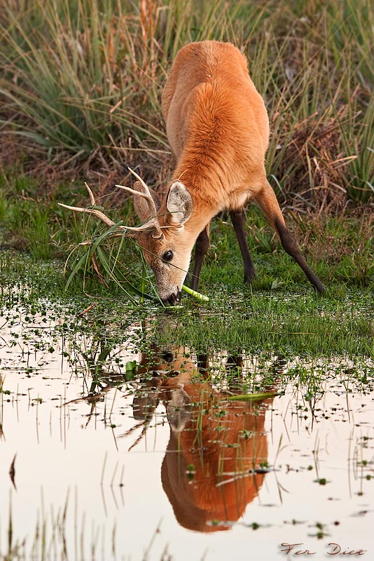 Hola Fer!!. Espectacular este macho!. Que lindos son estos ciervos eh.. Buena decisión la del reflejo, como suma che.