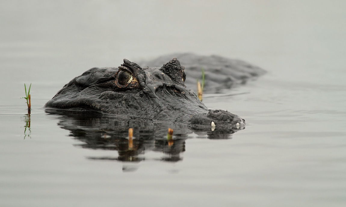 Agrego, la coincidencia de las varas que emergen del agua con las protuberancias de los ojos en el reflejo...es mortal! 8o