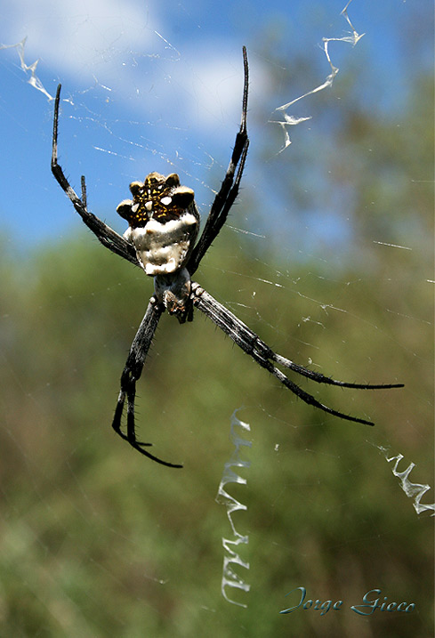 Precioso ejemplar y muy bien retratado Jorge. Muy buenos detalles y bien incorporada a la escena la telaraña tan particular que suelen construir estas argiopes. Saludos, Diego.