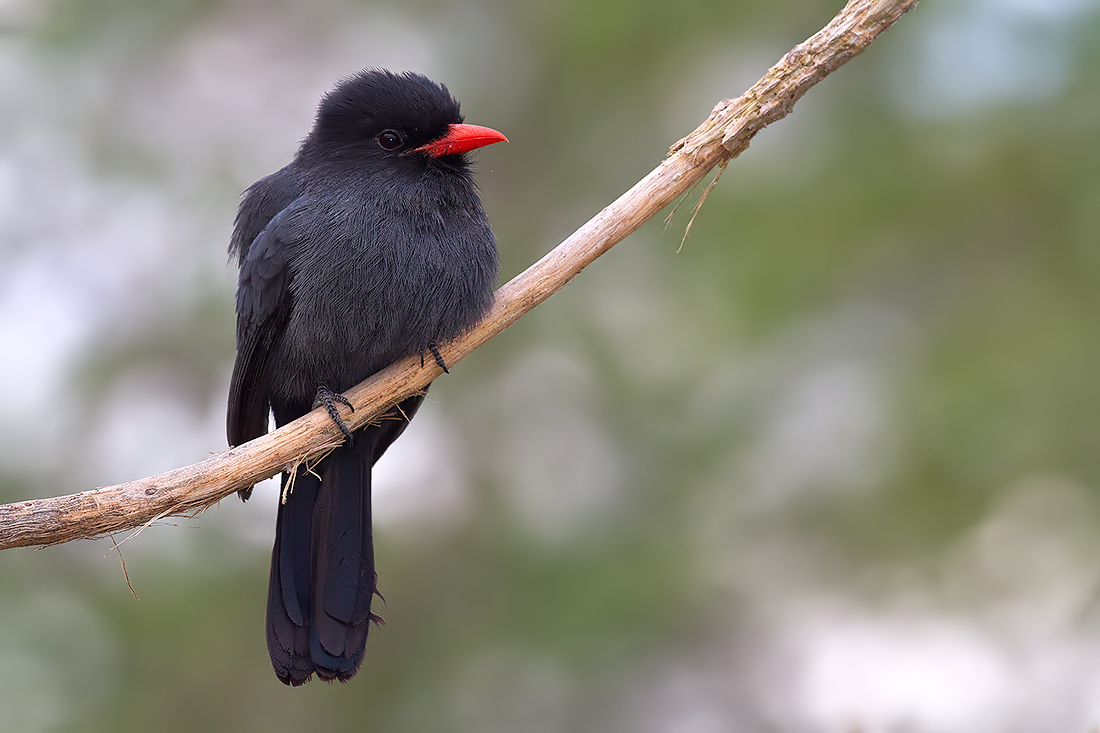 Hermosa especie, luce muy bien el plumaje negro y el pico rojo, te felicito