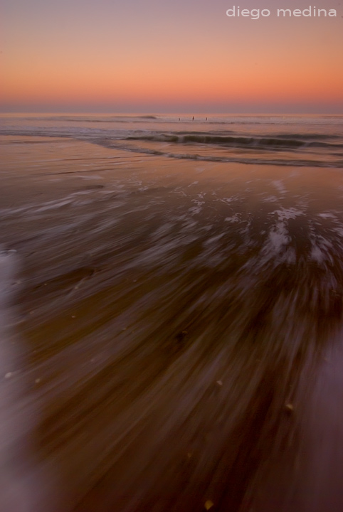 Qué linda foto, Dieguito!!! Hermosa postal con ese efecto de ola en retirada y esos tonos tan agradables del atardecer!