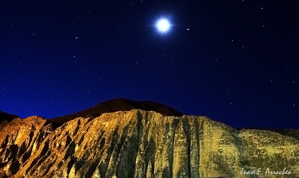 Linda foto Juan, yo hubiese probado tb una compo vertical, tomando más de abajo y que las líneas de las grietas lleven a la luna. Saludos