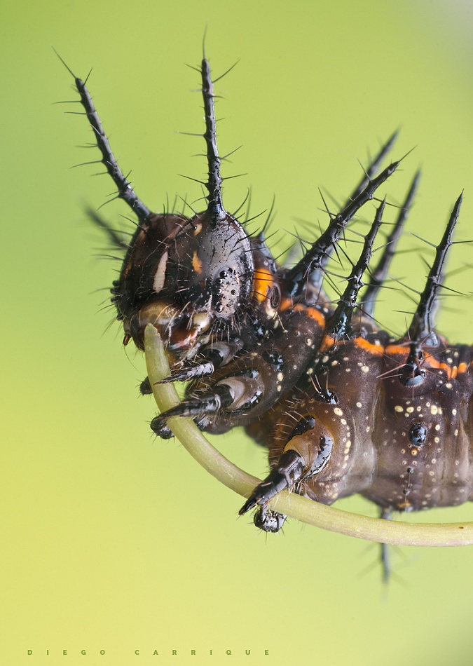 TRE MEN DA macro Diego!!!! Primero, el tamaño de estas orugas, oscila los 4 o 5 cm adultas, el diámetro de la cabeza debe ser a lo sumo 5 mm y el nivel de detalles que logras es tremendo!!! Súmale la naturalidad, la buena edición, NITIDEZ... realmente te felicito por tu laburo! ABRAZO
