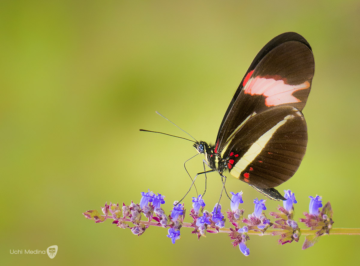 Almendra comun (Heliconius erato phyllis) sobre una Hyptis mutabilis (cuyo género cambió de nombre pero no me acuerdo como la llaman ahora) Muy linda foto.