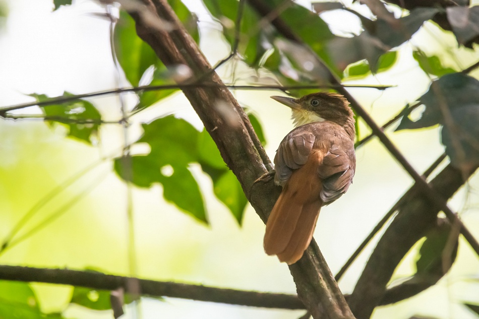 El año pasado cuando fuimos a Misiones no lo pudimos fotografiar! Nos cantaba adentro de la selva pero nunca salió!! Es un bicho muy arisco!!!!! Si te ve .... chau!!  Este año volví al mismo lugar y me escondí antes de llamarlo. Solo me dió unos segundos!! Es lo mejor que pude lograr! Saludos!!!!