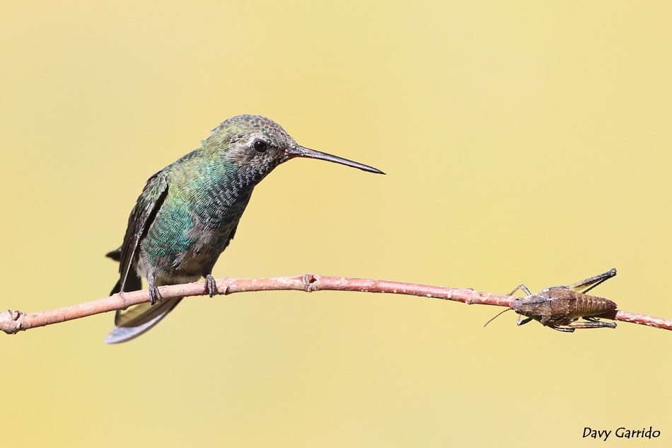 Para aportar algo y no perderme, comparto un Picaflor de Pico Ancho, que miraba con curiosidad una langosta que se paro muy cerca. Pachuca, Hidalgo, México.