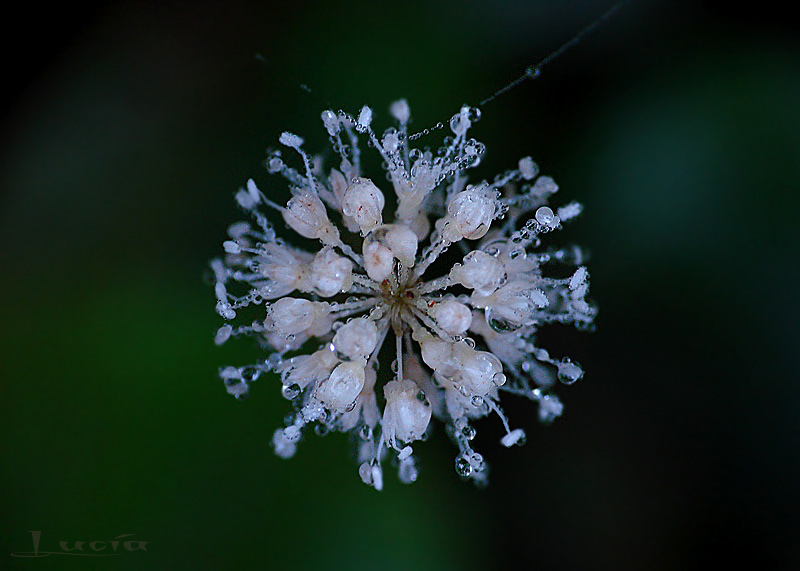 Lindísima foto Lucía, me encantan esas flores delicadísimas con las gotitas de rocío mojándolas. Saludos!!