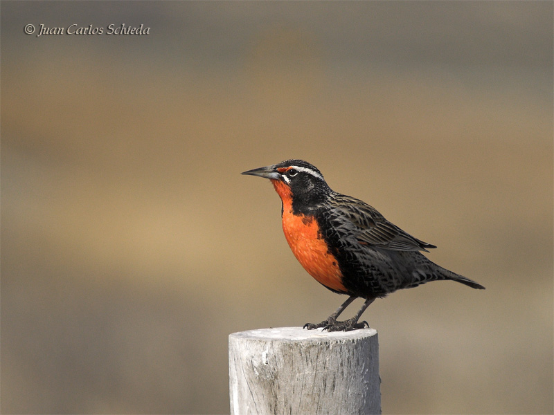 Esta loica está tomada en un simple poste de alambrado como el de cualquier ruta.