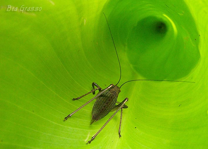 El bichejo dudo entre una chinche de agua a una cotorrita gigante.