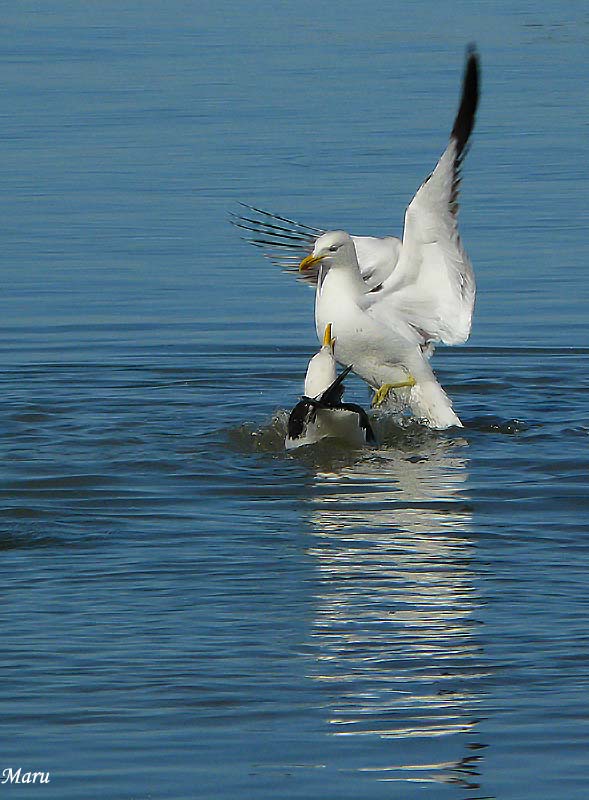 Un lujo esta foto, Maru. Una de tus mejores fotografías. Estan impresionante estas gaviotas en actitud de lucha. Un abrazo!, Jorge. ;)