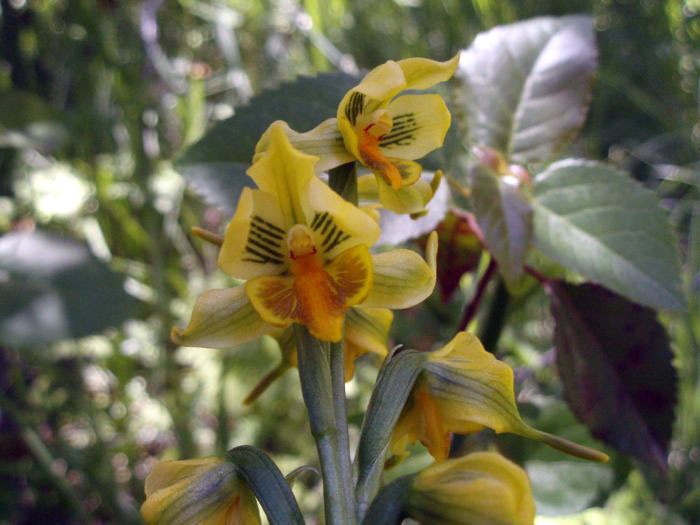 La que dice Joaquín (la Chloraea alpina) es más común en zonas más áridas o en alta montaña (había algunas en el aeropuerto y actualmente esta lleno de ellas en el Piltriquitrón), son un poco más pequeñas (la planta en sí) pero el tono es más anaranjado, es decir, más fuerte que el amarillo lavado de la Gavilea.