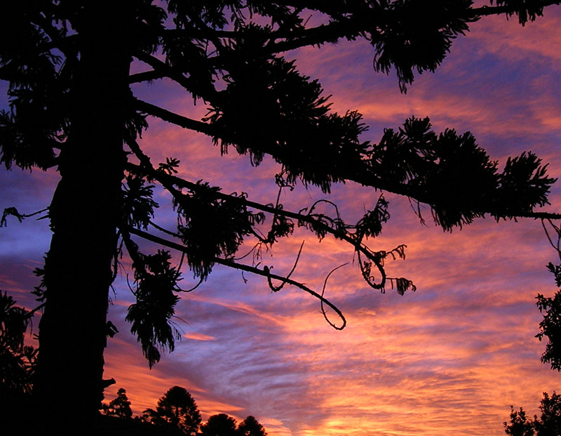 EXCELENTE foto!!! los colores del cielo y esa silueta sin lugar a dudas de una Araucaria! Saludos Bea