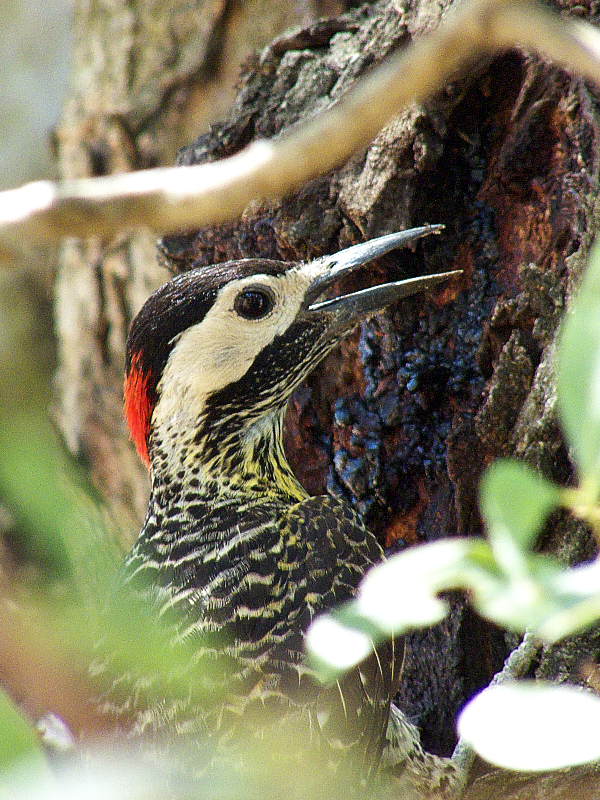 Hola Gonzalo, este carpintero que captaste tan bien lo que esta haciendo es jadear para eliminar el calor, las aves no tienen glandulas sudoriparas, por lo que tu foto es perfecta y refleja lo que contas a la perfeción.