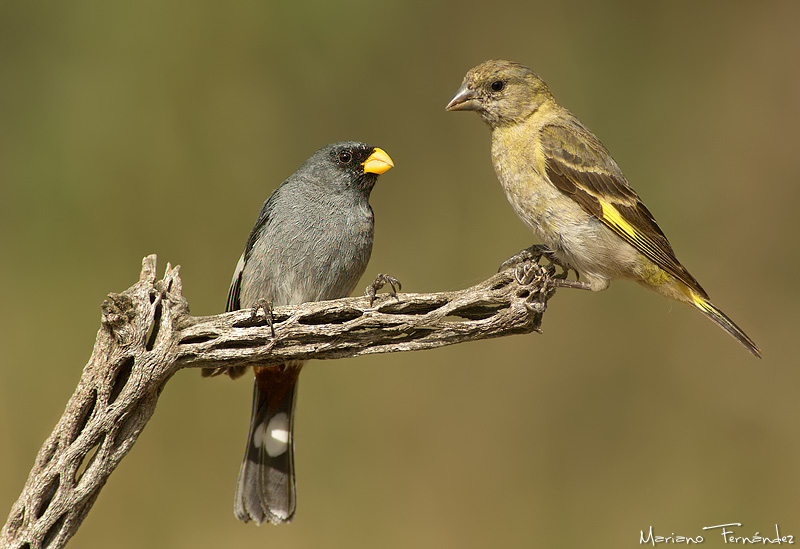 Un Cabecita negra (h) y un Piquito de oro (m) en el mismo posadero, de este fin de semana en Lihué Calel, donde pude darme el gusto de conocer a Ignacio y a Ricardo Doumecq, gente de primera y que comparte el mismo entusiasmo por la fotografía de naturaleza. Con ellos y con Jaime (otro maestro, a quien le agradezco la invitación) pasamos como ya se comentó, un par de días inolvidables, a pleno foteo, con una linda diversidad de especies y unas cuantas oportunidades fotográficas.
