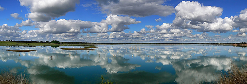 Muy buena panorámica. El reflejo le da fuerza a la imagen. Una pena la sequía. Saludos 8)