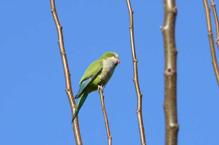 Hola Claudia, coincido con Lee en cuanto a que recortando en ambos lados te quedaria una foto mejor compuesta. Si te gustan estas cotorras, algun dia anda a sacar fotos a la Reserva Ecologica Costanera Sur. Alli se las ve en bandadas y tienen sus nidos en los arboles de la costanera. A veces se las ve en el piso y si sos cautelosa para acercarte las vas a poder sacar desde bastante cerca.