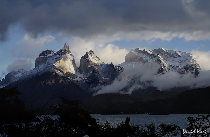 Esta foto es también de los Cuernos de Paine, estaba amaneciendo y después de estar 48 horas en ese lugar no las podía ver, estaban tapadas por las nubes permanentemente, después de llover toda la noche, aparecieron así, deslumbrantes , majestuosas, hasta el privilegio de ver como el sol las acariciaba, obviamente a buscar el equipo, trípode incluído y a cliquear.