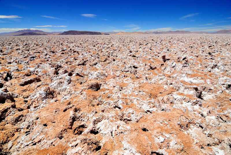 Cuando se produce la cristalización en algun momento del año se inducen oleajes que generan estas protuberancias y al secarse quedan de esta rarísima formación, llegando a tener hasta 40 cms de altura, no tienen idea lo que es caminar por allí. Lo más loco de todo es que tiene varios kilómetros de distancia esta característica, es por eso lo del título.
