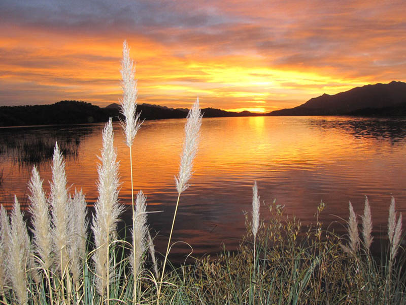 Opino como el resto, el atardecer que obtuviste es hermoso .Creo que la cortaderas asumieron un rol demasiado preponderante .