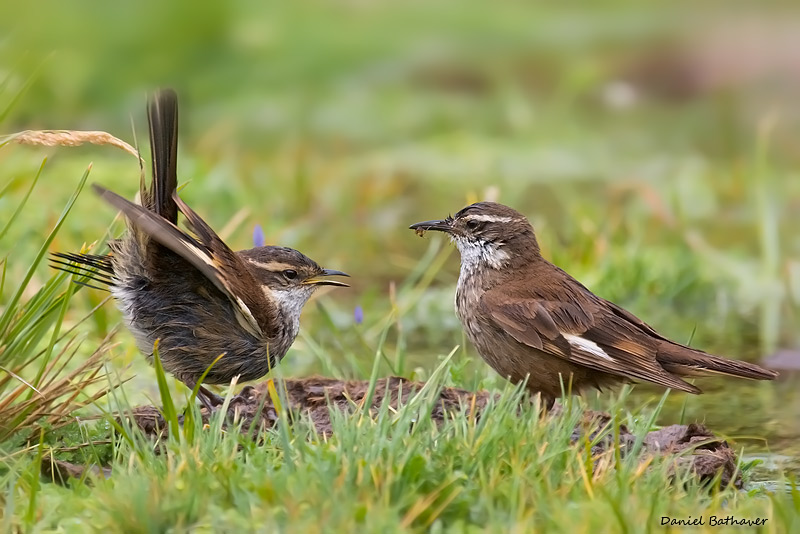 Esta foto la saque en las sierras de córdoba luego de varios viajes buscando este tipo de imagenes. La dificultad es que los pichones volaban muy bien, y cuando la madre daba la señal con un canto de que traia comida, volaban a encontrarse generalmente en lugares ocultos entre las piedras, no obstante bien camuflado y con mucha paciencia logre esta foto que por la actitud de alegria del pichon, esta entre las fotos mias que mas me gusta, considerando ademas que la especie es Remolinera Chocolate, que segun la guia de aves es endemica y la zona de distribucion muy acotada.