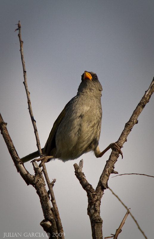 Les dejo esta foto de un Verdon en la RECS, en una pose bastante comica. Con la foto no lo puedo mostrar, pero mientras se sostenia con estas 2 ramitas, el viento lo tambaleaba para adelante y atras.