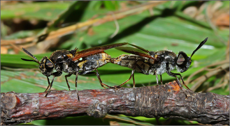 Excelente momento y foco, concuerdo con el comentario de _Claudio, no se si son avispas, me parecen moscas, pero nunca vi una cópula así entre ellas, todas las que tengo son distintas, felicitaciones :aplausos: