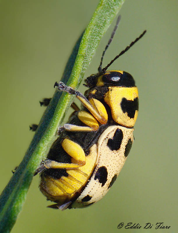 Es un Coleóptero o escarabajo,su nombre científico es Xanthogaleruca Luteola.