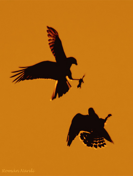 Hola a todos/as!!!! Comparto con ustedes esta toma de un Chimango y un Halcòn plomizo a contra luz, con luz de atardecer, es imprecionante como ver como actuan estos halcones cuando ven a los chimangos, en este caso, levantar una presa.