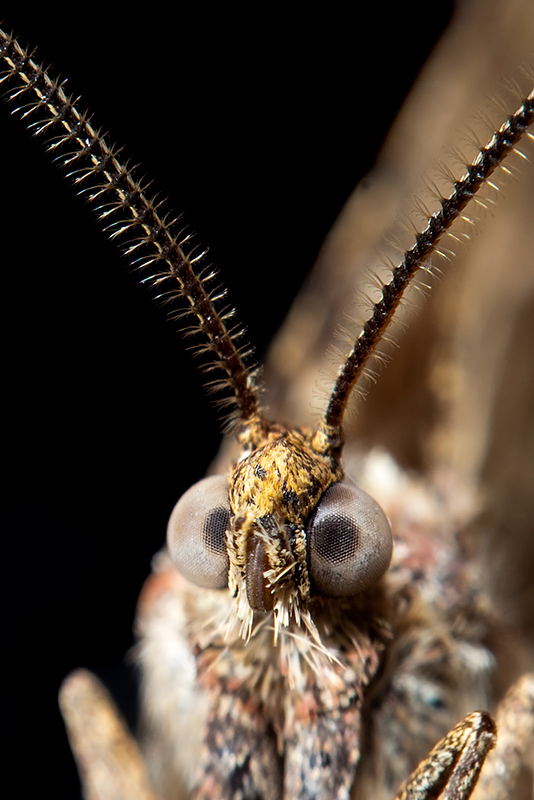 Primer plano de una nocturna que no pude identificar, foco selectivo en cara y antenas, reduccion de ruido en el resto. besos