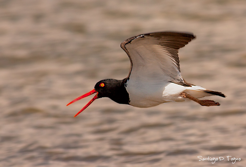 Tremenda foto del vuelo del Ostrero, en el momento del grito y con un ojo hermoso.
