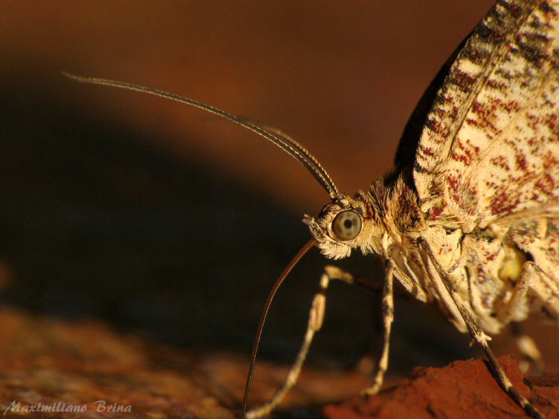 De la misma serie que la araña saltarina "por el suelo", en la Chacra mariposa. Estaba esperando que se acercara una alas sangrantes -que, como siempre en estos casos, fue la única que finalmente no se acercó-, ya el sol lentamente empezaba a bajar y sus rayos oblicuos le dieron de lleno a esta mariposa que subo aquí. Creo que por ser una mariposa "clara" esa luz le da un aire interesante. Igualmente remarcar esto la saqué sin flash y a una velocidad un poco alta (1/400s) para que quede medio oscurita.