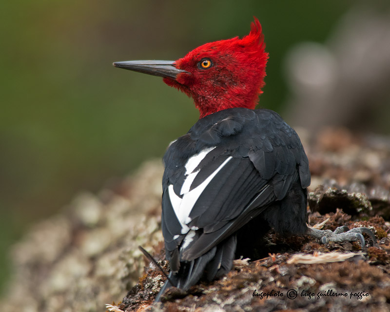 lago roca en el parque nacional de Tierra del Fuego , ya al atardecer nos juntamos en el bar del camping y vemos entrar a Eva con una sonrisa de oreja a oreja , y nos dice vi el carpintero !!! , con Val y Bea al unisono DONDE ??? acto seguido estabamos subiendo por la montaña en busca de el y de repente tac tac tac y ahi estaba , nos dejo acercarnos bastante , esta es de las que mas me gustaron la comparto abrazos , es casi cuadro completo solo la reencuadre un poco.