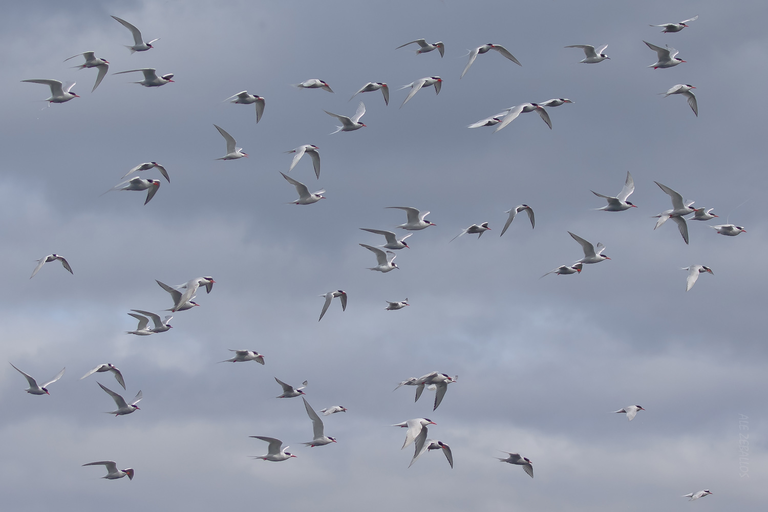 Ok, eran muchos! ahora, lo increible es que siendo tantos, a tanta distancia y separados entre si, parecen estar todos en foco. Esta buena la sensacion que produce. Se ve que a falta de un gaviotin muy cerca, se puede cambiar por muchos lejos!