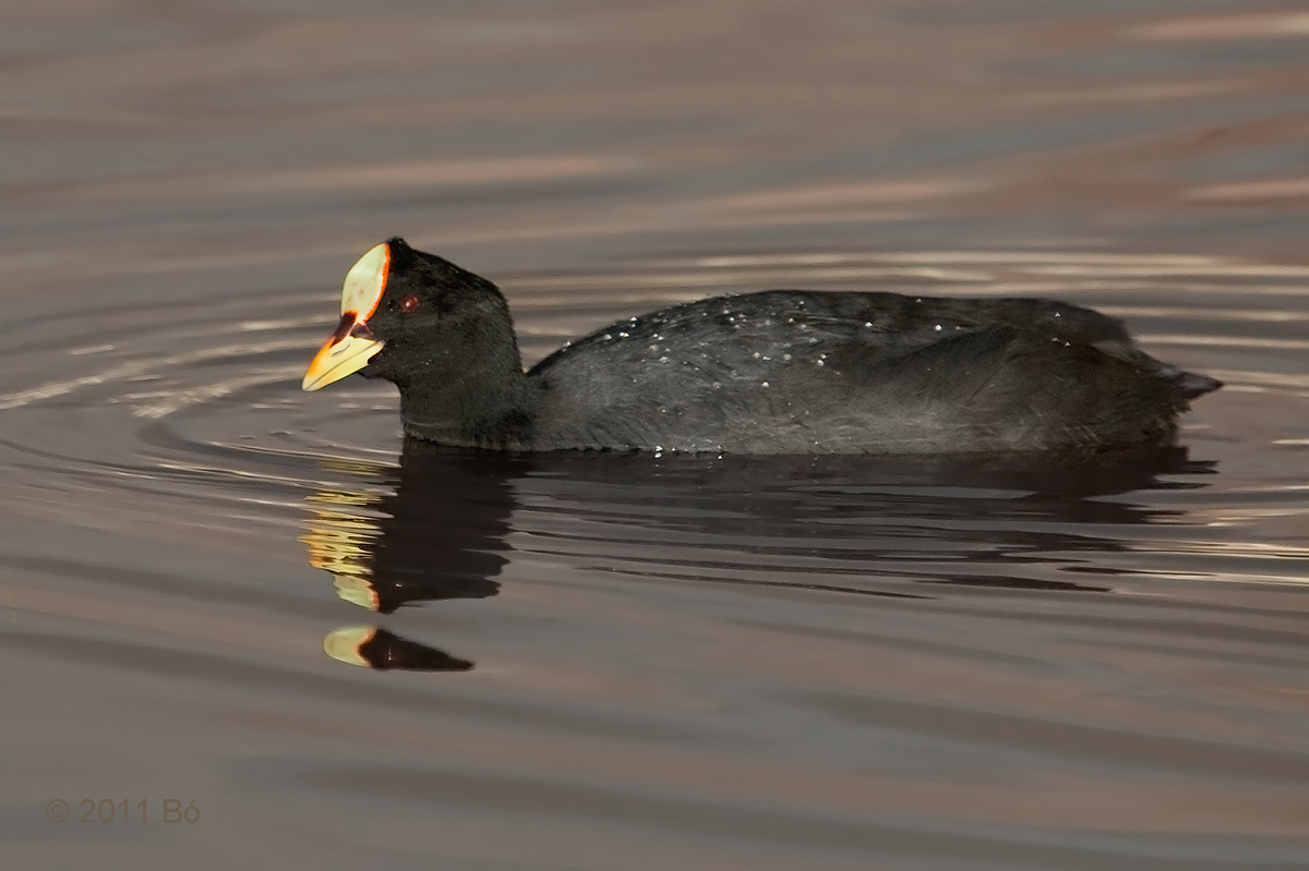 Luego de la vertiginosa sambullida registrada en la toma "SPLASH DE GALLARETA", este Bichin retoma su postura habitual y relajada sobre el agua; el golpecito de flash revela las gotas de agua adheridas al plumaje despues de la inmersión.