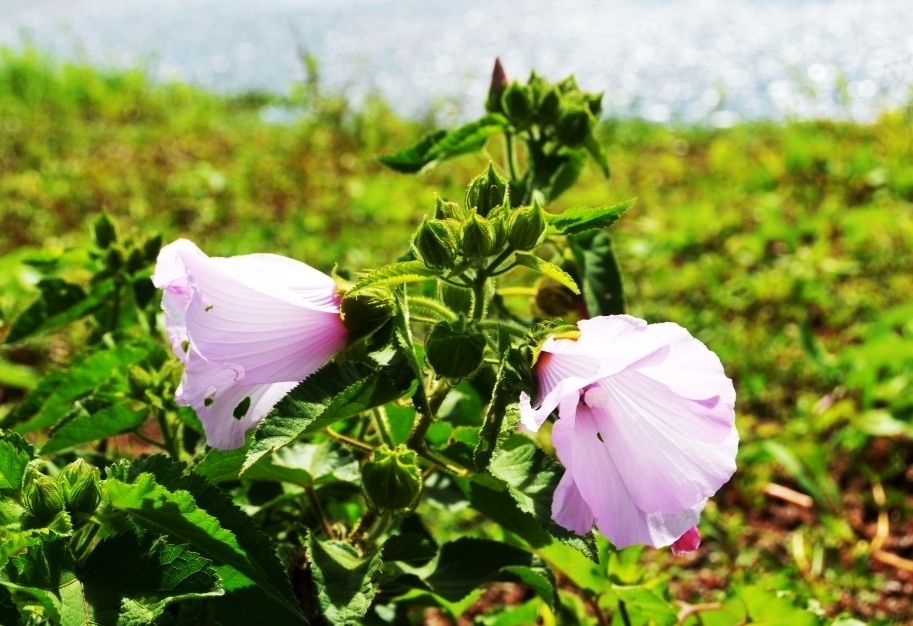 Hermosa la transparencia de esos pétalos! Coincido con Ricardo que conviene regular el tema de la luz tan fuerte, y tratar dentro de lo posible que el fondo no distraiga del motivo principal. Quizás recortando la parte de arriba donde se ve el agua para que no compita con las flores ganaría mas fuerza el encuadre.