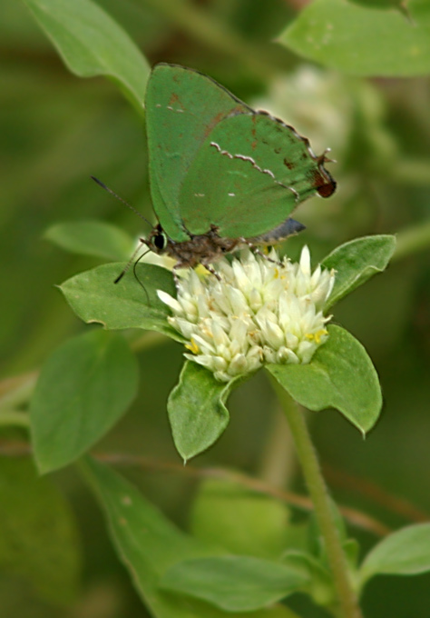 Hola Luis, muy buena captura. Debe hacer dos horas que estoy tratando de determinar su clasificación. En base a lo que dice Juan Carlos P., muy bien orientado, es de la Flia Lyncaenidae, subfamilia Theclinae, que son las que tienen en general una o dos colitas como ésta. Luego viene la Tribu..jeje...que es la Cyanophrys, hasta ahí todo ok, pero ahora llega el problema, la "remus" o Esmeralda doble línea, para mí no es, sino que puede ser la "acaste" que coincide mejor con la linea blanca del ala posterior. Pero ambas, carecen de esas colitas, al menos en las fotos que he visto. Bueno quizás alguien nos pueda ayudar. Pego el post dónde está la imágen de la Acasto, vos dirás..jaja. Saludos. Dalí