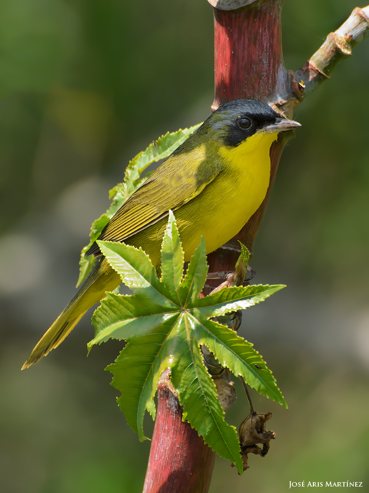 Tenía esta toma de un Arañero Cara Negra, del verano pasado en la Recs y me gustó el detalle de la hoja en el posadero... espero que les guste, saludos!!