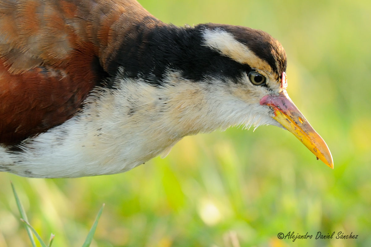 Gracias por los comentarios a la jacana. Aca va una foto de su hijo/a. Es del mismo día y andaban bastante juntas de a ratos, pero esta es más confiada que el adulto. En un momento se me vino más cerca la distancia mínima de enfoque del lente (4 metros, y obviamente no tenía tubos de extensión encima ... ). Esta es a contraluz y no tiene tanta nitidez, pero es una de las mejores que conseguí. Tiene un poco de recorte para componer (entraba parte de una pata en el cuadro).