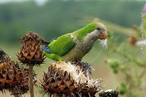 Se ve muy buena la cotorra sobre esos cardos enormes...con el fondo desenfocado se ve muy clarit la escena...espero que subas fotos de la D70 pronto...