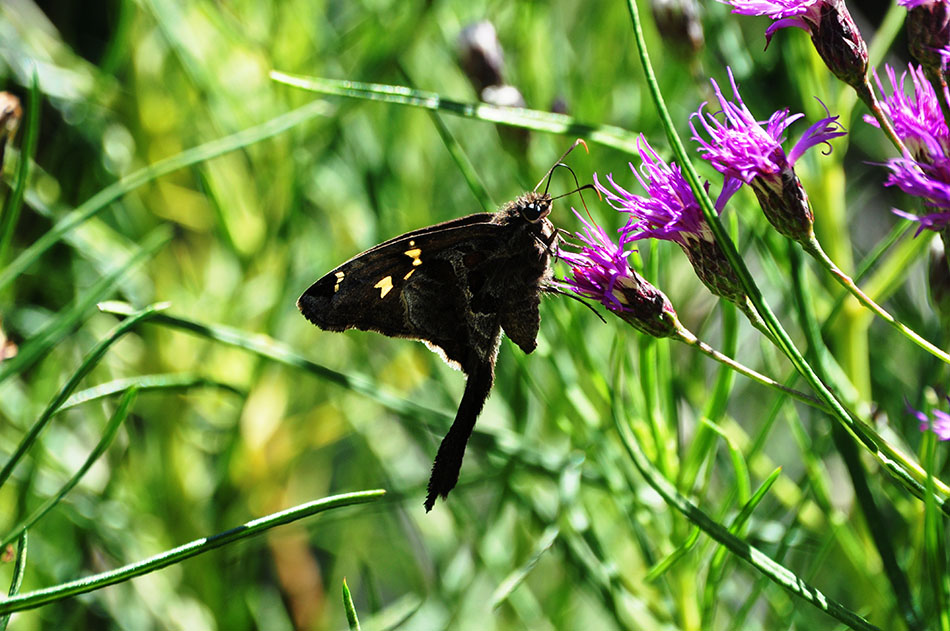 A mi me encantan estos coludos, lindas esas flores y ella, como sugerencia viendo los parámetros te diría que si bajás el iso, y no tenés flash externo con el flas incorporado encendido podés nivelar las diferencias de luces, apagar algo el fondo y lograr más detalles en la mariposa, felicitaciones por el logro