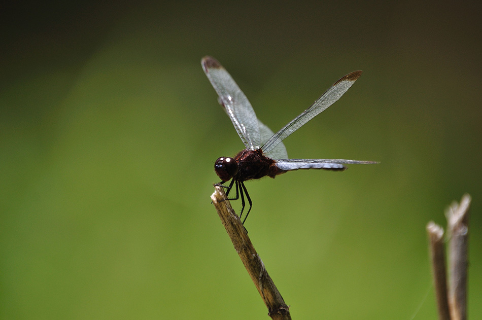 Compositivamente los palitos que estan a la derecha abajo, distraen del objeto principal. Yo los clonaría para centrar la vista solo en la libelula. Se podría recortar esa zona dejando un espacio a la izquierda para darle aire a la toma. Espero te sirva mi pequeño aporte! saludos