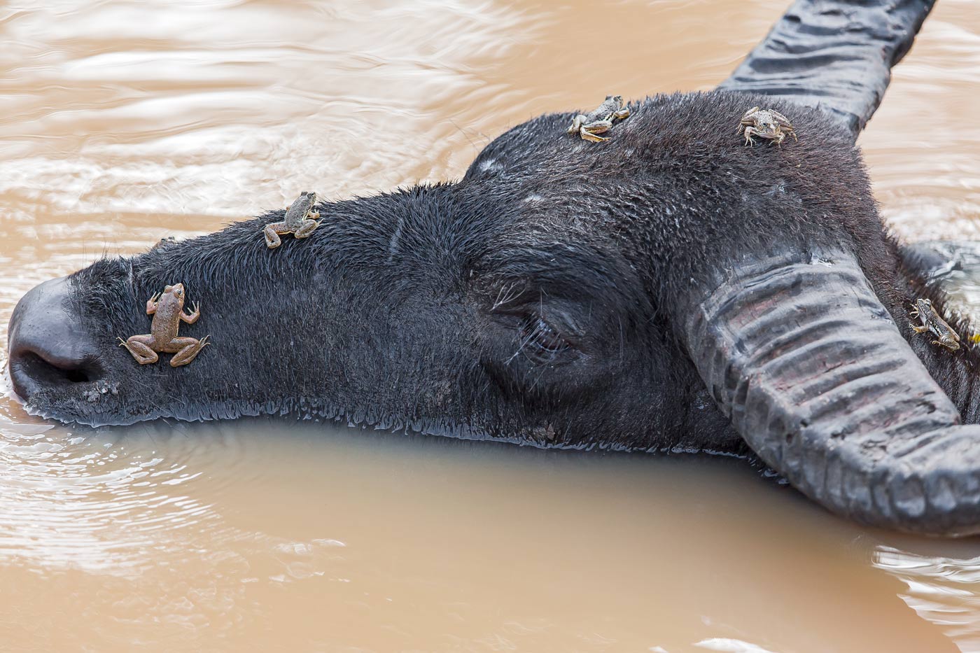 | | Gracias a Andres, no tiene que esperar a Mayo 31. Exactamente, las ranas se suben al bufalo para comerse las moscas que se posan en la cabeza. |