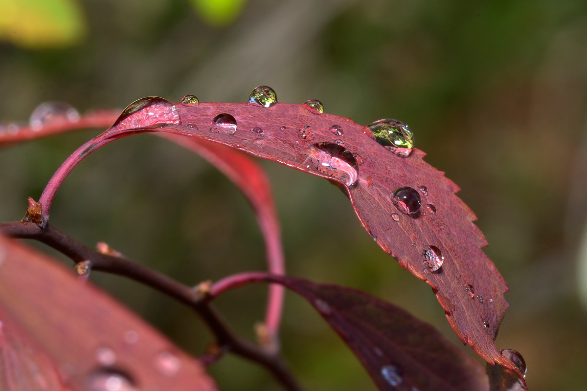 Te quedó genial, Ricardo!! Hermosos reflejos en esas gotas, muy linda esa hoja morada, bien en foco. Lindísima compo.