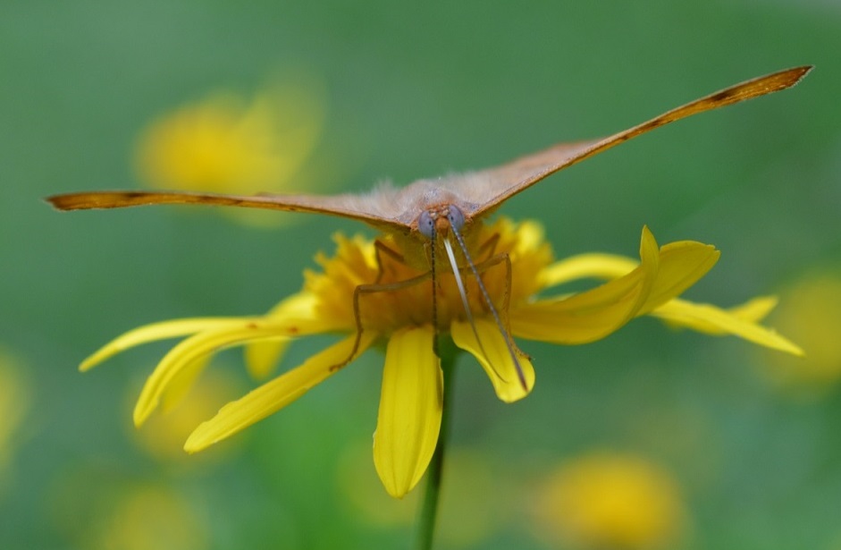 | | Hola Carmen, muchas gracias por tu comentario. Hace un rato me ayudaron a identificar a la mariposa, se llama Acróbata rojiza (Emesis russula). Te comento que este ejemplar fue bastante tranquilo, se quedo un rato largo sobre la flor del Euryops y me dio la oportunidad de sacarle varias fotos desde distintos ángulos; parecía una modelo posando... Saludos. |