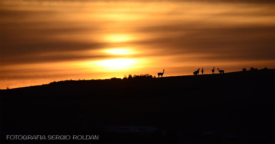 silueta de guanacos en el horizonte